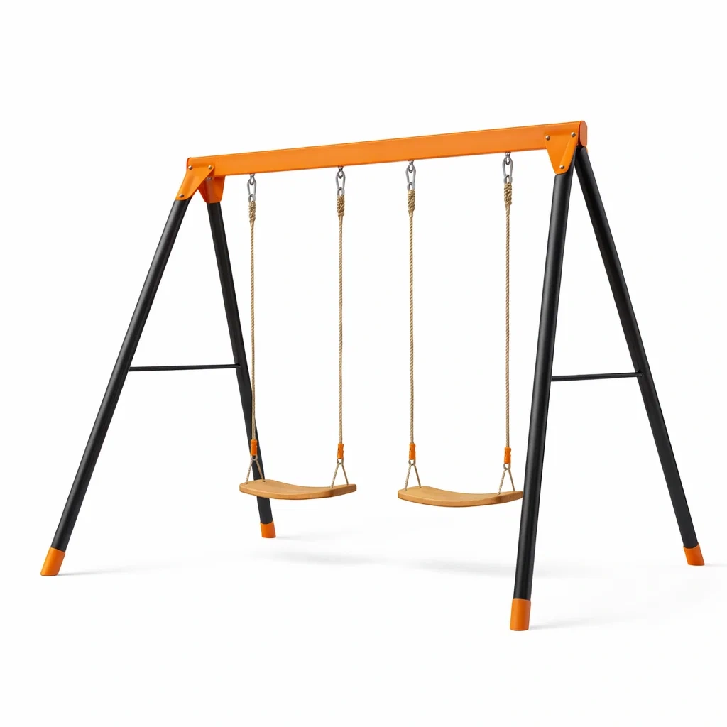 Schaukelgestell metall schwarz orange mit holzsitz und seilen
